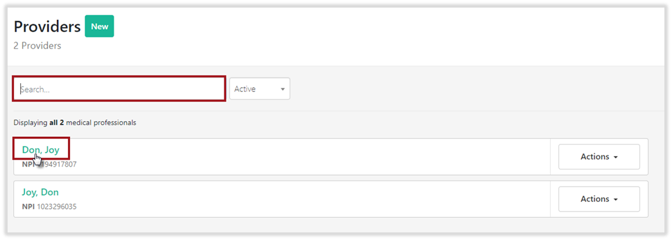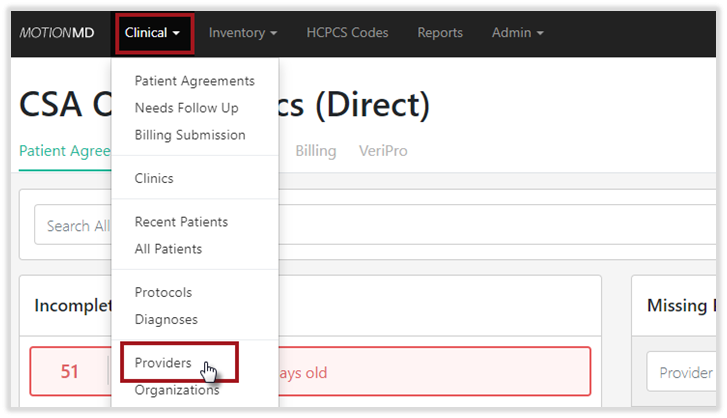 Select the Clinical tab from the menu bar and click on Providers.