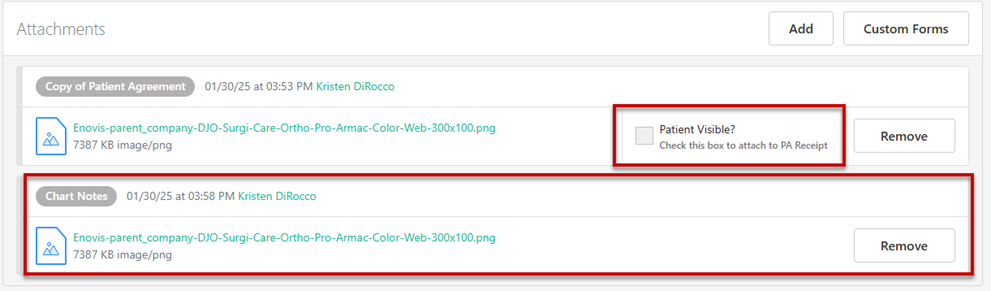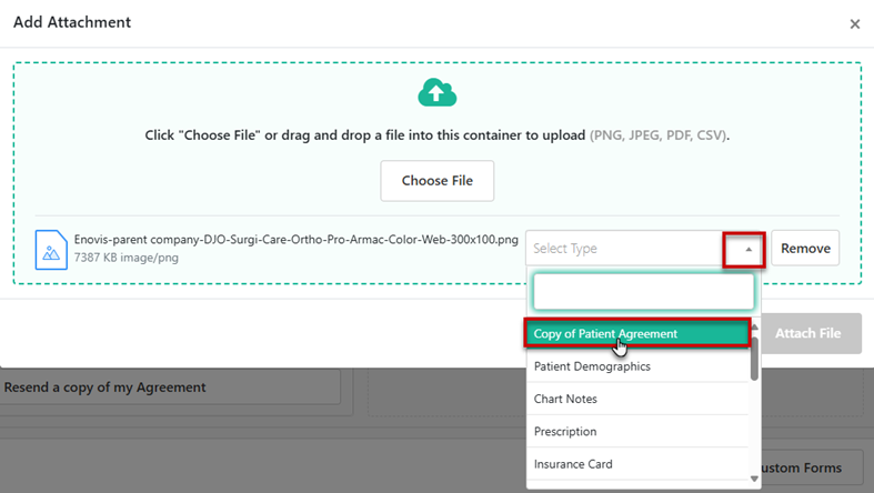 A feature has been built to allow customers to select specific Attachments uploaded to a Patient Agreement to be appended to the Patient Receipt package that is emailed to the Patient. Attachments selected to be sent to the Patient will still be attached to the Billing Document package, no change has been made to that functionality. To use this feature, it needs be enabled on the Account settings page. If interested, submit a Help Ticket asking for the functionality to be turned on.