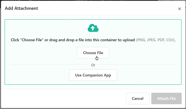 A popup module will appear. Upload attachments utilizing the current upload options.