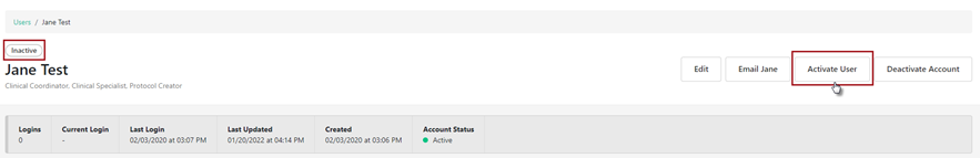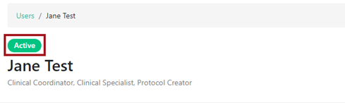 Once user is activated, the Active pill will appear above the user name.