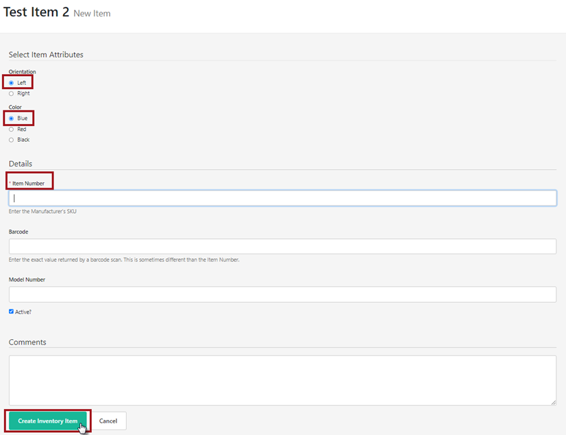 Assign Attributes and add Item Number then select Create Inventory Item: