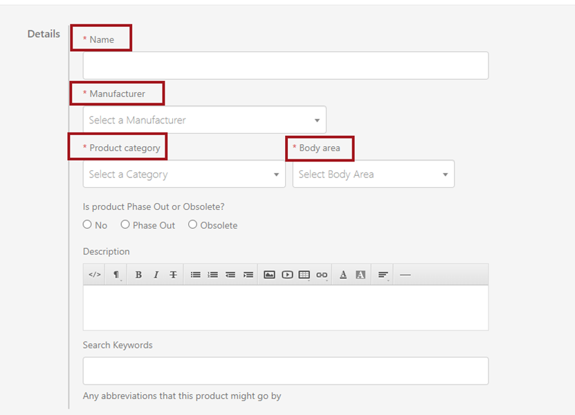 Add product information and details. Note, there are some mandatory fields, indicated with an asterisk while others are optional.