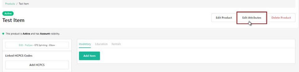 Once the NEW Product is created, Attributes should be set prior to Adding Items. Select Edit Attributes.