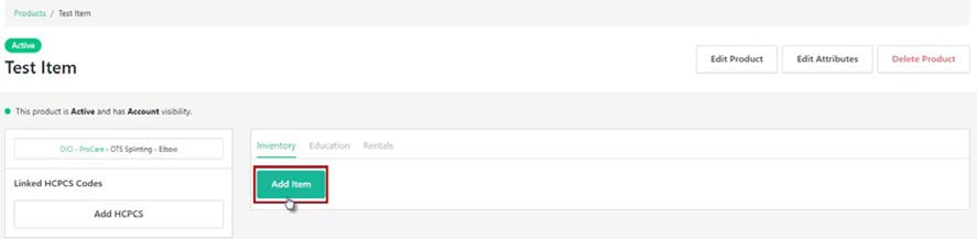 The final step is adding the Inventory Item/SKU to the Product by selecting Add Item: